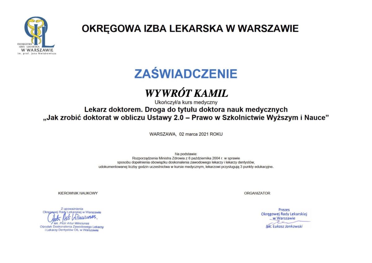 Swoją wiedzę i kwalifikacje nieustannie poszerzam, uczestnicząc w licznych krajowych i międzynarodowych szkoleniach specjalistycznych oraz konferencjach naukowych.